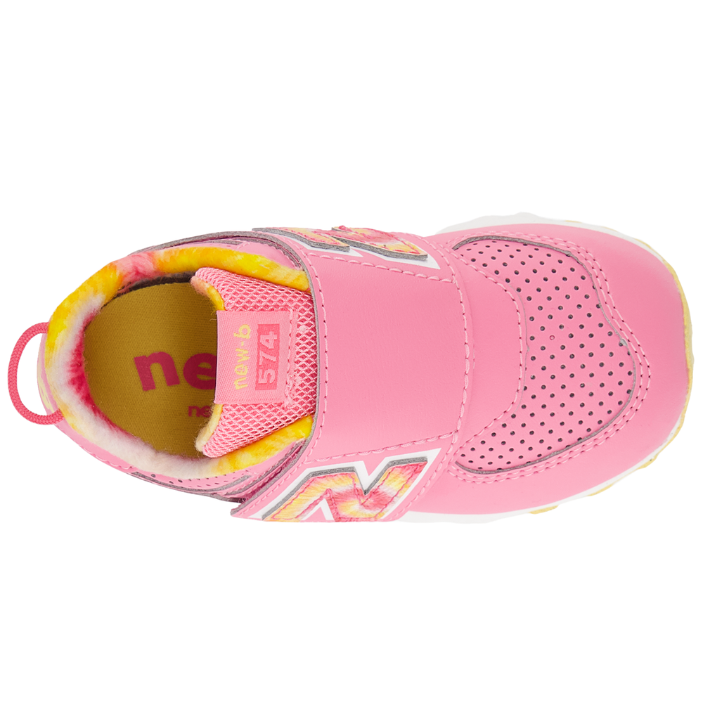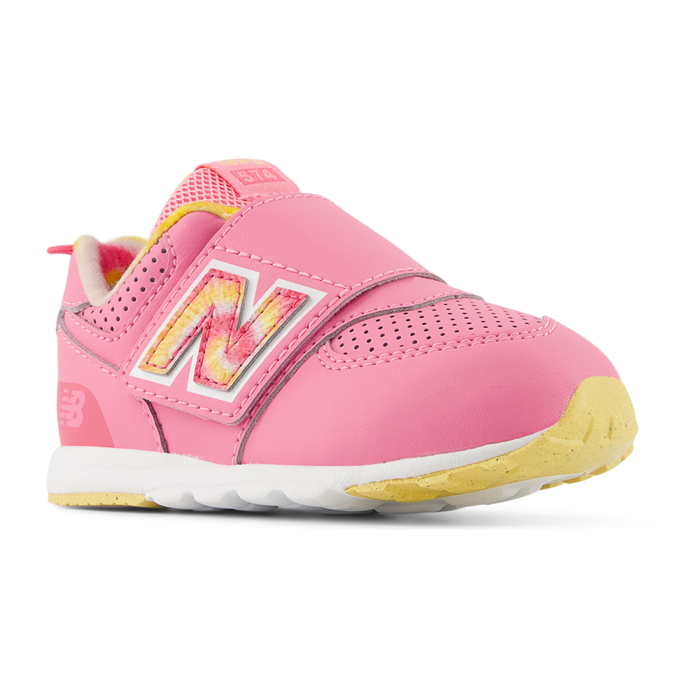 New Balance babacipő az 574-es sorozatból, kényelmes tépőzáras rögzítéssel.